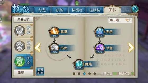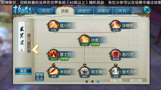 技能加点的具体分配需围绕门派三重技能展开,第一重中怨念羁糜和魔元邪咒建议加点到8级和9级以提升暴击伤害和真气管理,第二重的蛊王姿态加3级为释放天选道怨做准备,归灵秘印加9级提供关键护盾效果,淬魂天袭和森罗三笑加满以增强眩晕控制与爆发输出。第三重的天选道怨作为终极技能必须满级,其禁疗特性在团战中具有战略价值。过渡技能如御空术和幽泉鬼步只需少量点数即可,以便将资源集中用于核心技能,同时魔魂姿态的防御加成和戾魂血印的吸血效果也需适当强化,确保角色在近战切换时拥有足够的续航能力。